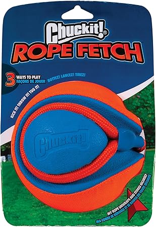 Kick it! Tug it! Throw it! The Chuckit! Rope Fetch dog toy combines three ways to play into one unique toy. Transform the Rope Fetch into a tug toy by unwrapping the 18 Inch rope from the ball. Made from durable polyester oxford material, the rope features a handle for the pet owner while the ball features easy grip indentions that make it easy for your pet to bite or catch.