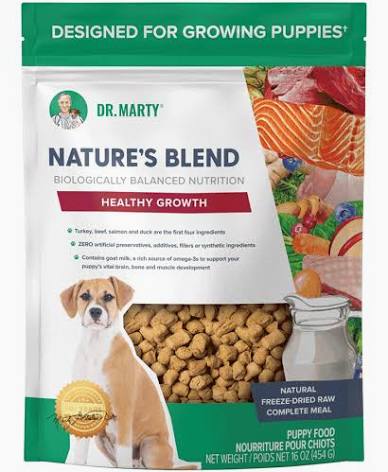 Dr. Marty Nature’s Blend – Healthy Growth is a premium freeze-dried raw food made specifically for growing puppies. It combines premium meat, vegetables, fruit, and key superfoods to support your dog’s strong muscles, sharp mind, healthy heart, active energy, easy digestion, and healthy immune system… with ZERO artificial preservatives, or fillers.