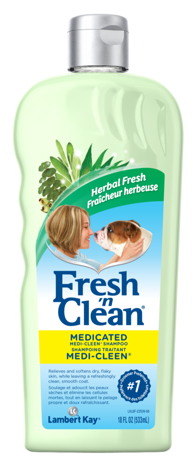 This medicated dog shampoo is made with ingredients that help to soften the skin and relieve scaling dandruff, dermatitis, itching, and dry skin. Fragrance free, Fresh ’n Clean Medi-Cleen Medicated Shampoo is for use on dogs only - not for use on cats.
