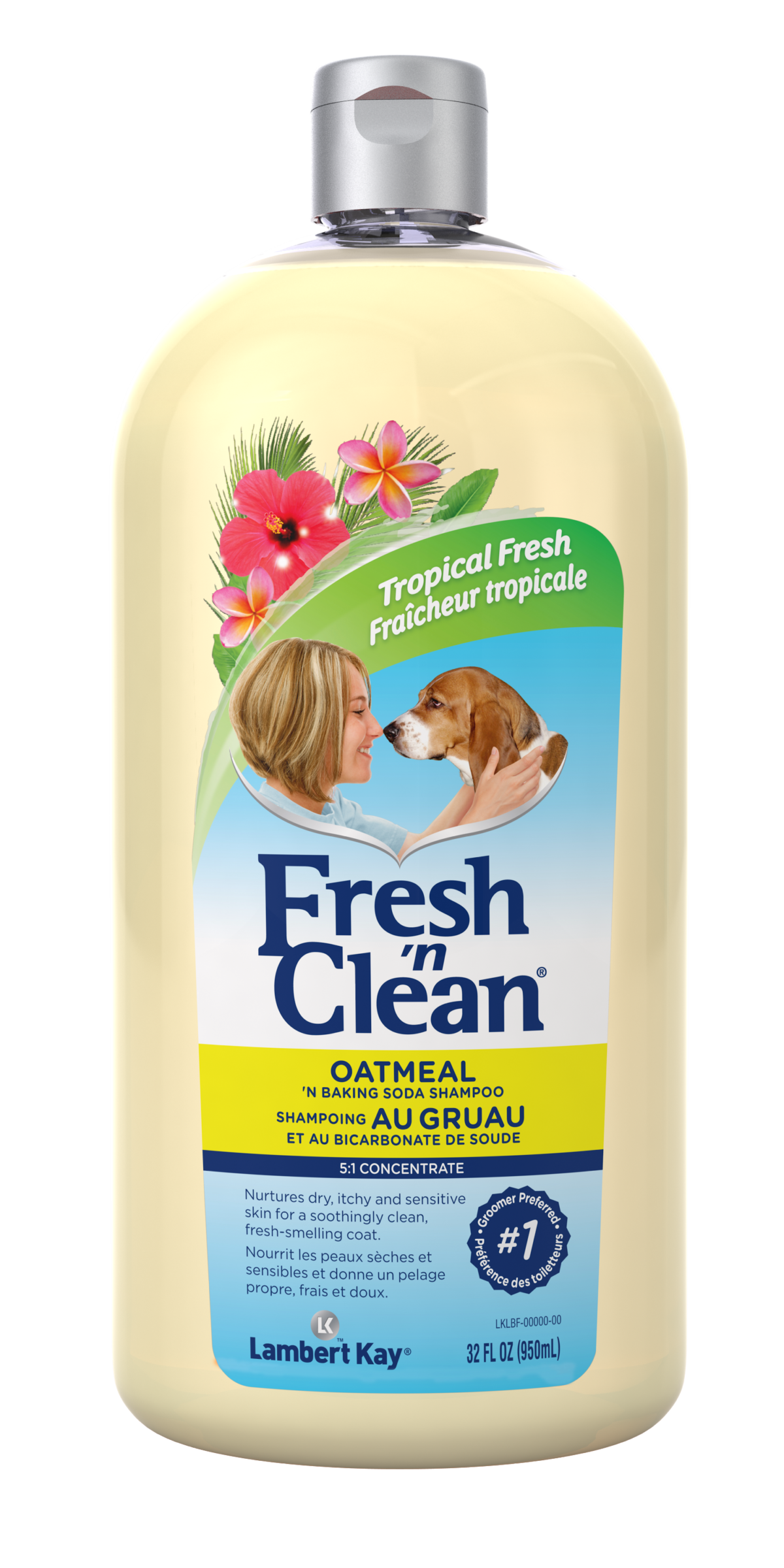 Bathe your dog in a blend of soothing oatmeal, baking soda and Aloe vera with Fresh ’n Clean Oatmeal ’n Baking Soda Shampoo. The shampoo uses gentle, plant-based cleansing ingredients. This shampoo works into a deep, rich lather, washing away dirt and debris to leave the coat clean and refreshed while soothing the skin and controlling odor. And the Fresh ’n Clean signature, long-lasting scent keeps your dog smelling fresh up to two weeks.
