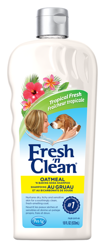 Bathe your dog in a blend of soothing oatmeal, baking soda and Aloe vera with Fresh ’n Clean Oatmeal ’n Baking Soda Shampoo. The shampoo uses gentle, plant-based cleansing ingredients. This shampoo works into a deep, rich lather, washing away dirt and debris to leave the coat clean and refreshed while soothing the skin and controlling odor. And the Fresh ’n Clean signature, long-lasting scent keeps your dog smelling fresh up to two weeks.