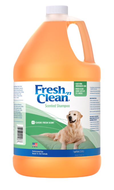 Keep dogs clean and smelling fresh everyday with Fresh ’n Clean Scented Dog Shampoo. The natural, soap-free, plant-based cleansers wash away dirt and grime. Vitamin E and soothing Aloe vera lock in moisture for a soft and manageable coat and soft skin. Fresh ’n Clean’s signature, long-lasting Classic Fresh scent keeps your client’s dog smelling fresh up to two weeks.