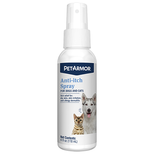 Dogs and cats can suffer from dry skin, skin irritation and allergy dermatitis. PetArmor® Anti-Itch Spray for Dogs and Cats can help soothe, dry and heal moist “hot spots.” It relieves itching and helps control the spread of lesions. The anti-itch spray provides immediate soothing relief and does not sting.