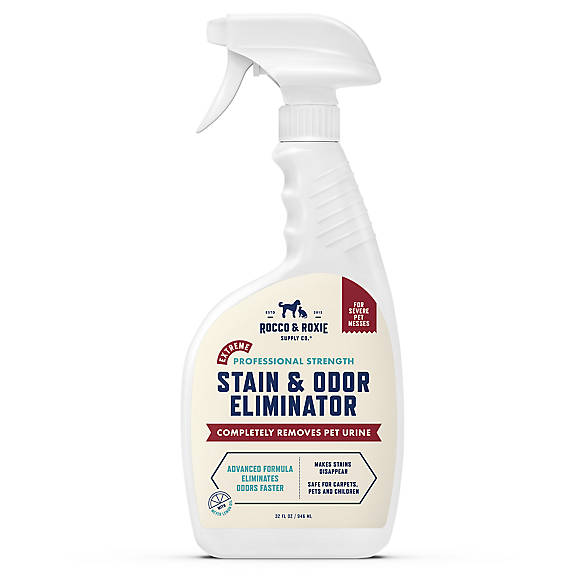 Accidents can easily happen when you have a pet. Fortunately, Rocco & Roxie Extreme Stain & Odor Eliminator has your back, along with your carpets, upholstery, furniture and pet carriers. Specially formulated to conquer the worst bowel blowouts, secret pee spots and vomit puddles, it adds a mineral-based odor remover to our professional-strength enzyme blend in a powerhouse combination that eliminates stains and odors at the molecular level. All that's left is a light, fresh lemon scent that quickly dissipates so it won't irritate pets, children or adults.