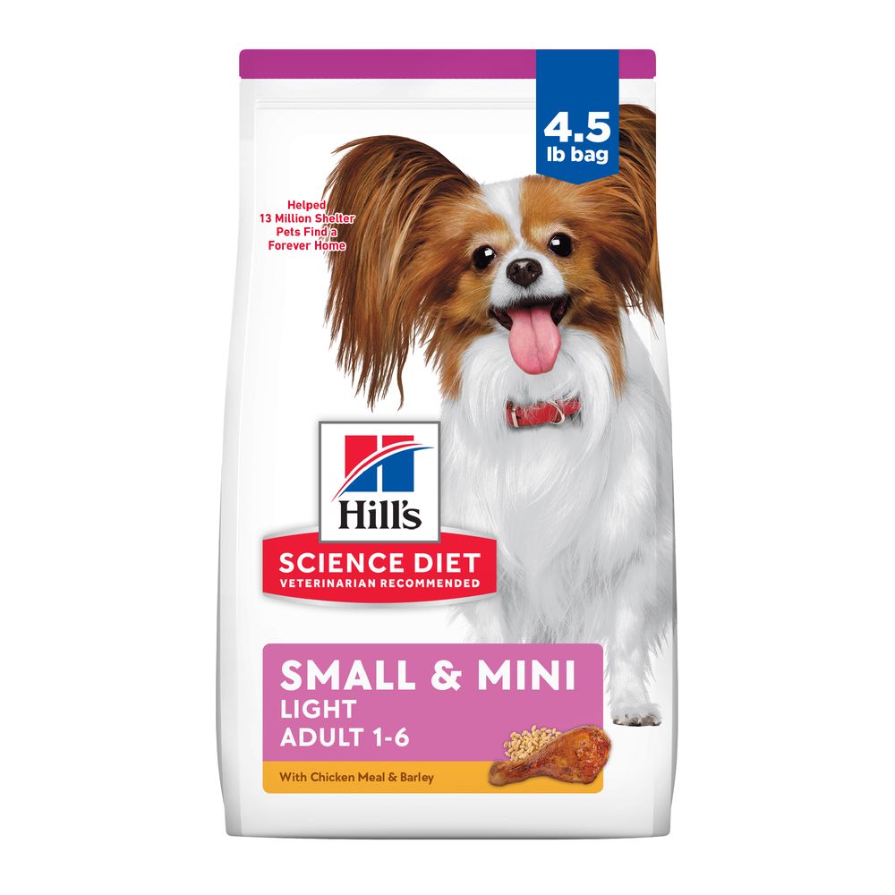 Big on Love, Small in Size. Hill's Science Diet Small Paws Light Adult dog food is tailored nutrition for less active adult Small & Mini dogs requiring a low calorie food to help maintain a healthy weight & lifestyle. Specially made with nibble size kibble. Low calories & L Carnitine help promote ideal body weight, support healthy mobility & maintain heart function. High quality protein & natural fibers help satisfy hunger between meals. Nourishing Omega 6 & Vitamin E blend for healthy skin & luxurious coat. Contains our special Small & Mini antioxidant blend for lifelong immune support