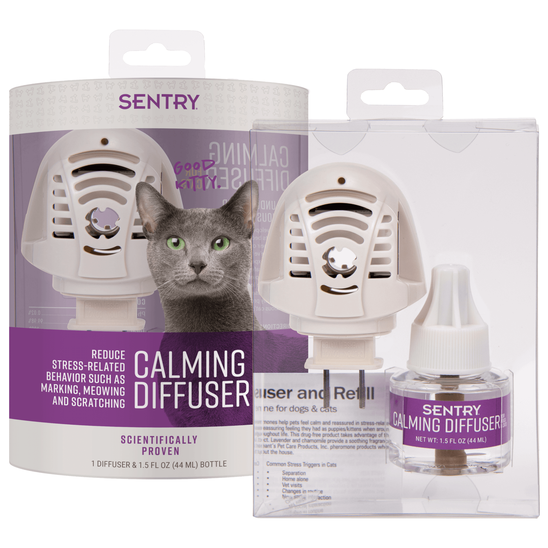 - The easy to use diffuser that helps alleviate problem behaviors triggered by thunderstorms, new visitors in the home, and even introducing a new cat into the family