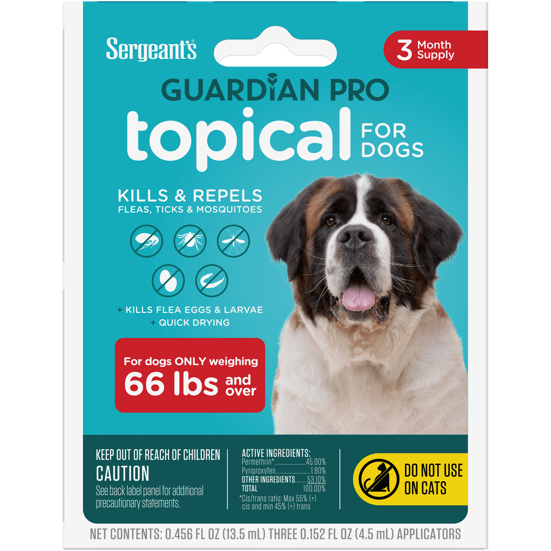 Sergeant's GUARDIAN PRO Flea & Tick Topical for Dogs >66lbs