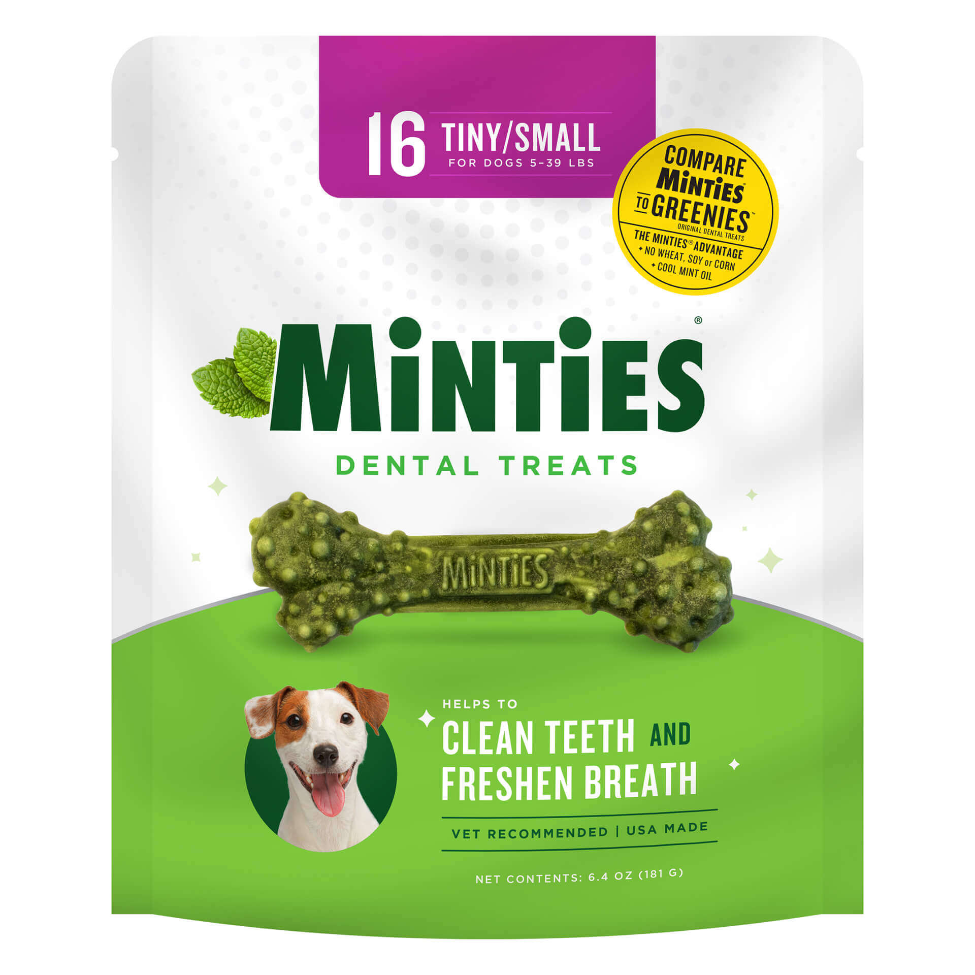 - Give your dog the mouth-wowing treat that helps promote their overall health with Minties® Dog Treats.
