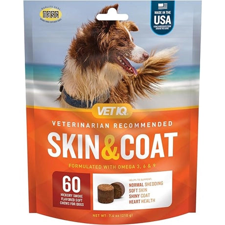 VetIQ Skin & Coat Soft Chew Dog Supplements 60ct Hickory Smoke Flavored