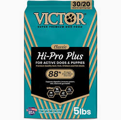VICTOR Hi-Pro Plus for Dogs is formulated to meet the nutritional levels established by the AAFCO Dog Food Nutrient Profiles for All Life Stages, except for growth of large size dogs (70 lb. or more as an adult).